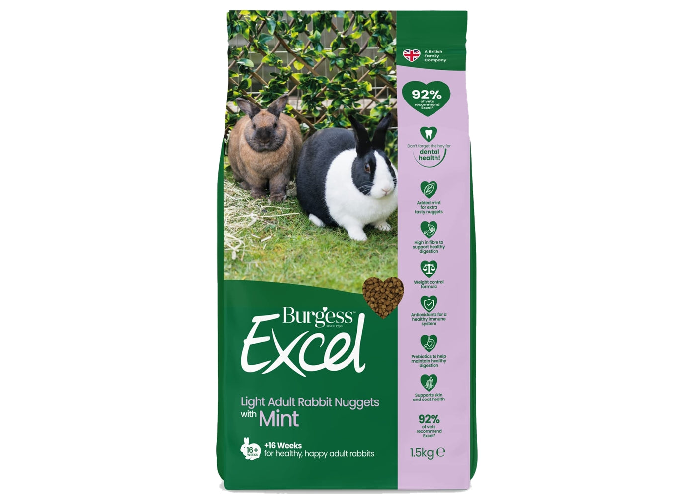 Burgess Excel - Light Adult Rabbit Nuggets with Mint - 1.5kg