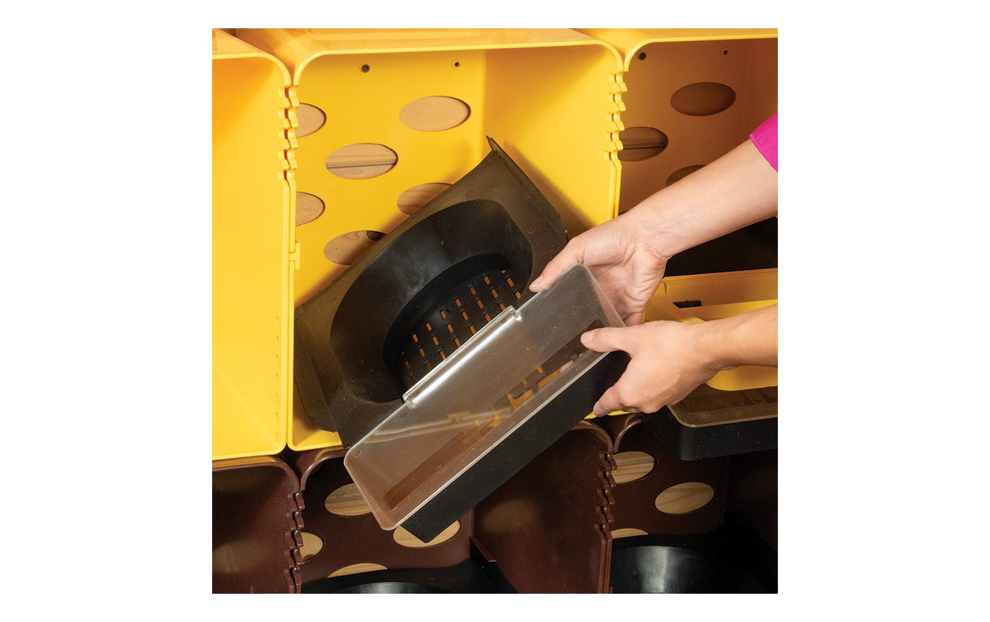 The Chick Box Rollout Nest Bottom can be supplied with the Chick Box or bought separately and added later. The big advantage of using the rollout nest bottom is that the eggs will automatically 'roll out' into the collection tray on the outside where they are easily visible for collecting. This saves stressing the hens and also precious time. There is also an optional lid available to cover the collection tray (sold separately). This will help to keep the eggs clean and away from any pecking. Another big advantage is the eggs are more readily removed and cleaned. The Chick Box Rollout Nest Bottom is suitable for all breeds and big savings can be made on bedding materials and cleaning time. This product has been designed to fit the Chick Box, however it can be easily integrated into any nest box measuring 11-12 inches by 12 inches (internal measurements).