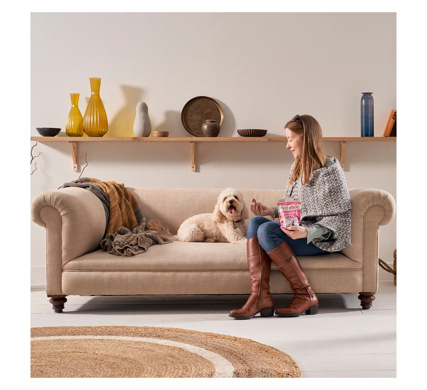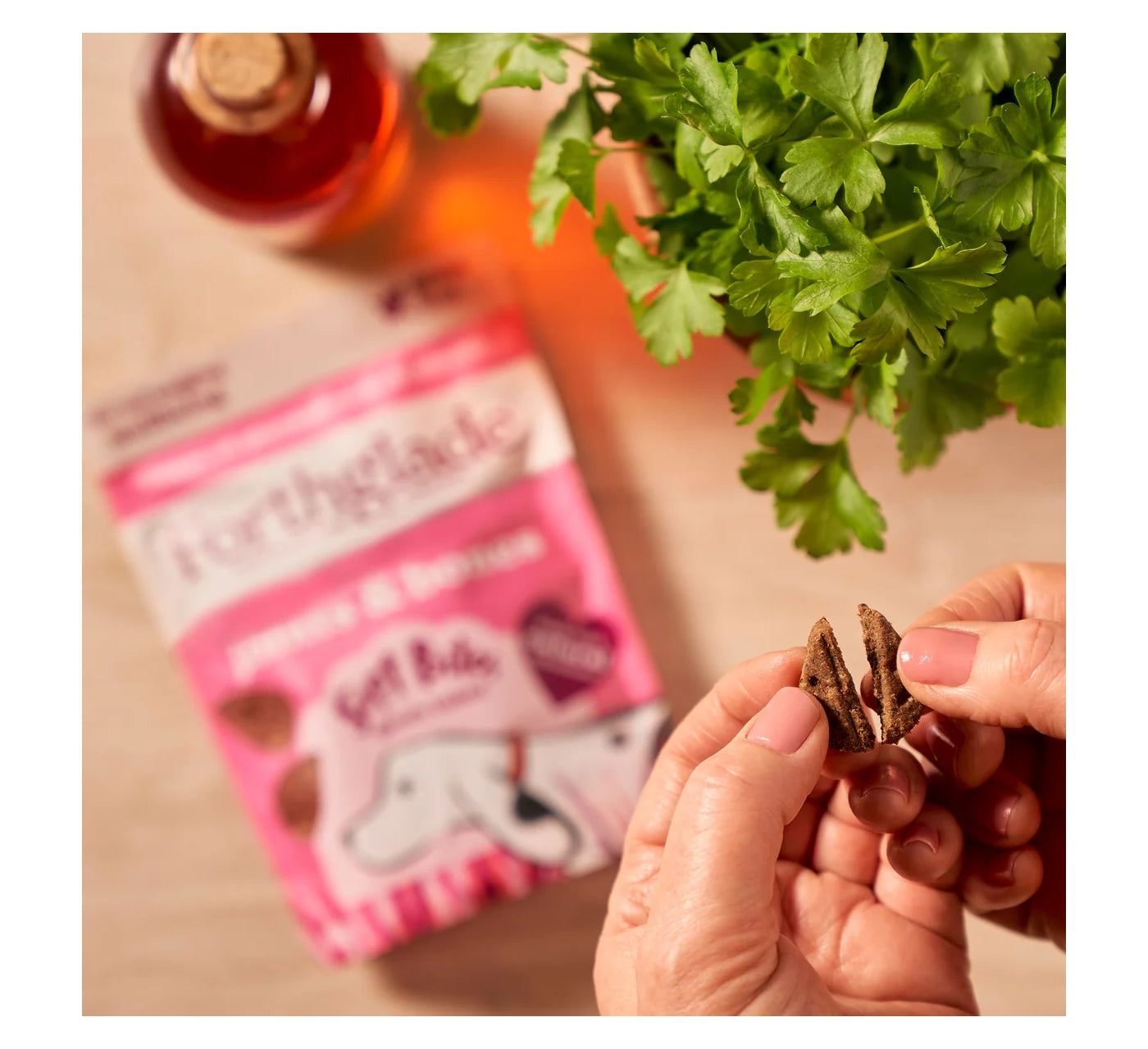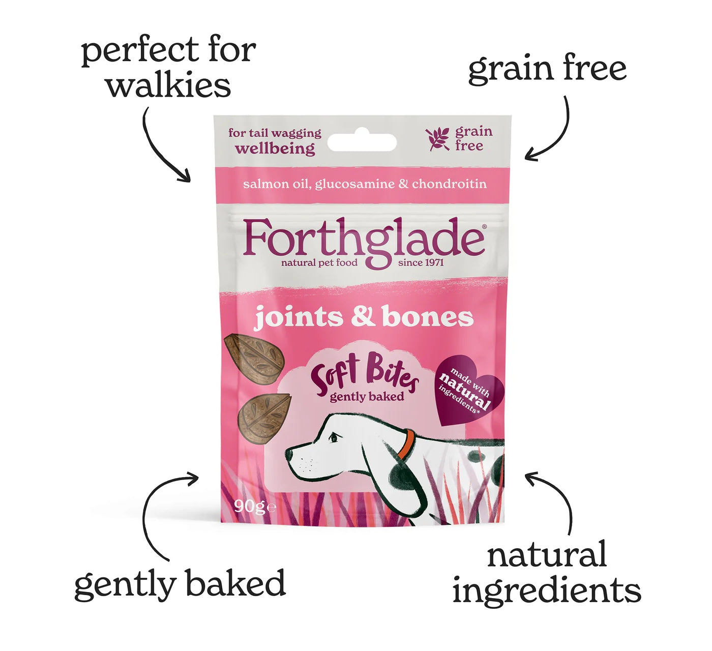 These delicious grain free soft bite treats with salmon oil are perfect for when out walking. Alongside glucosamine and chondroitin, salmon oil is a source of omega-3 which helps to support the development and maintenance of healthy joints and bones. Suitable for puppies and dogs aged 2 months+, these softer semi-moist joint treats are packed full of natural ingredients, completely free from artificial colours, flavours and preservatives. Each bag is resealable for freshness and the leaf-shaped treats are easy to break into smaller sized treats for puppy training or easy portion control.