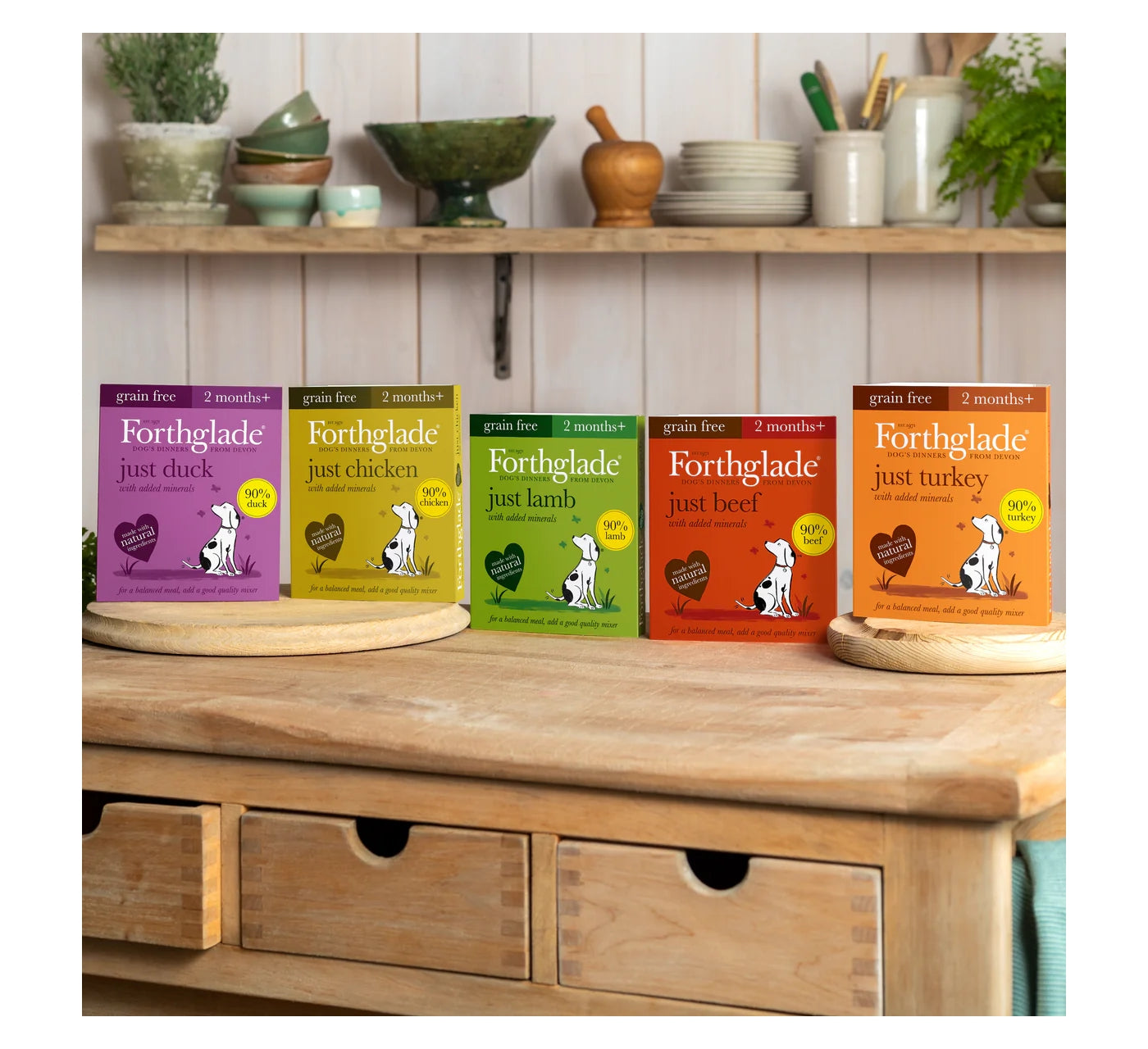 Forthglade Just Duck complementary meal contains 90% duck along with minerals and a little water to help us gently steam the recipe. This simple, honest and protein-packed hypoallergenic meal is designed to help you tailor mealtimes for your four-legged friend. Free from anything artificial, junk, fillers or grains, this meal is perfect for even the most sensitive of tummies. Simply add your Just Duck meal with a good quality mixer such as Forthglade natural dry cold pressed food or carbohydrates such as pasta, brown rice or vegetables.