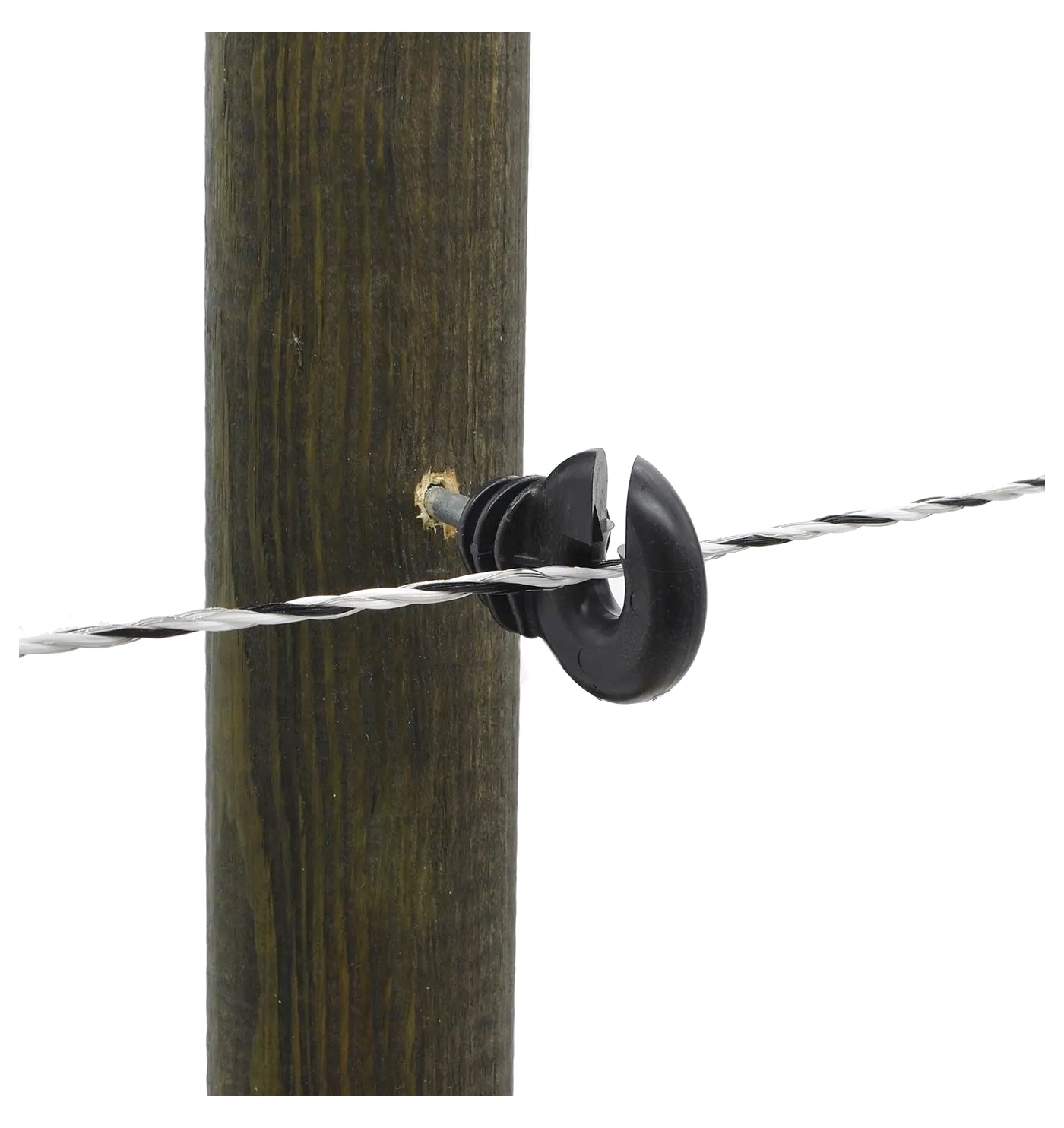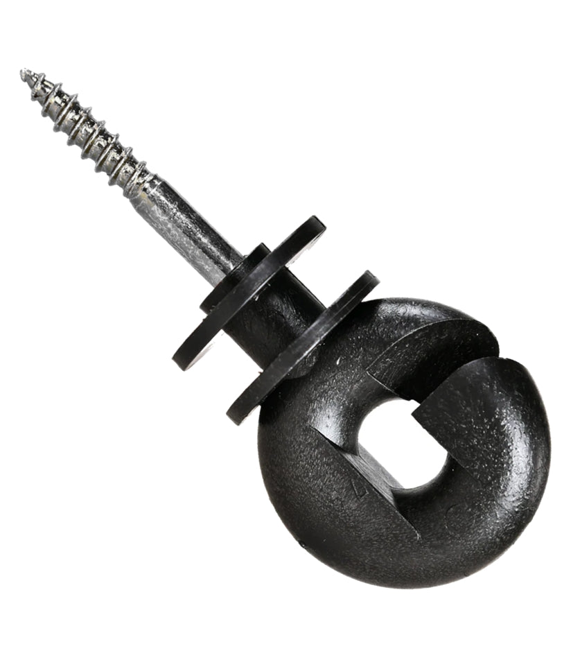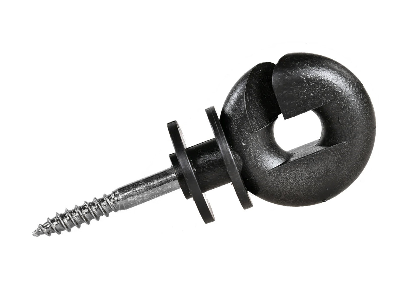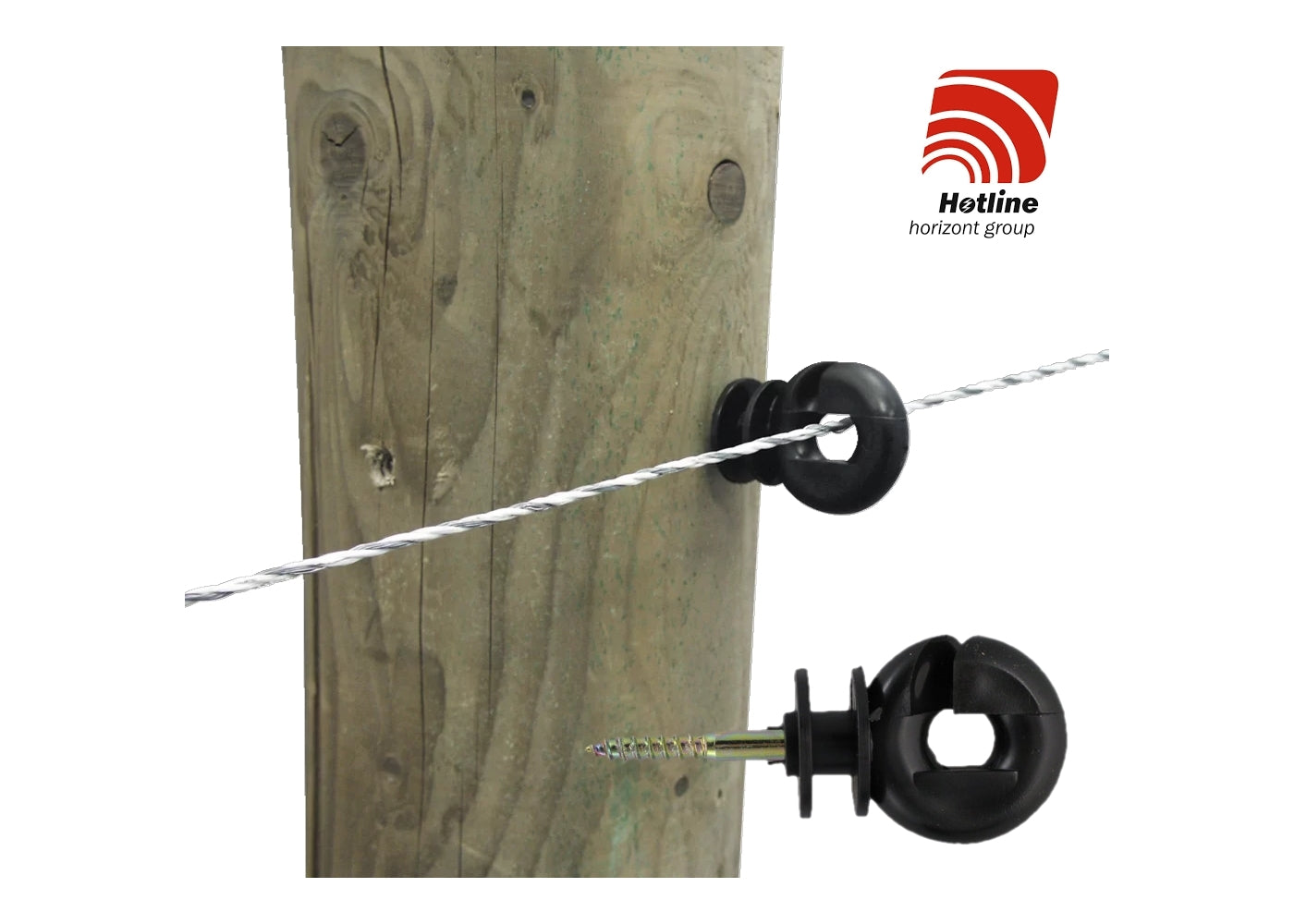 The Hotline Screw-in Ring Insulator is universally suitable for pasture fence tapes up to 13mm and pasture fence wire and rope up to 7mm. With the integrated wooden thread on the 5.3mm thick and stable support, this insulator can be quickly and securely attached to wooden or recycled stakes and is suitable as a line insulator. The conductor material is free running and the proven design prevents it from falling out even when untensioned. Hotline insulators are made of high quality plastics and are UV resistant. *Available in a pack of 20.