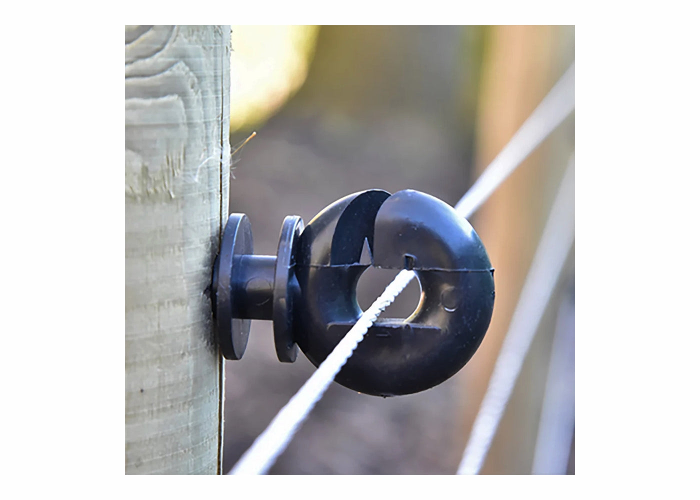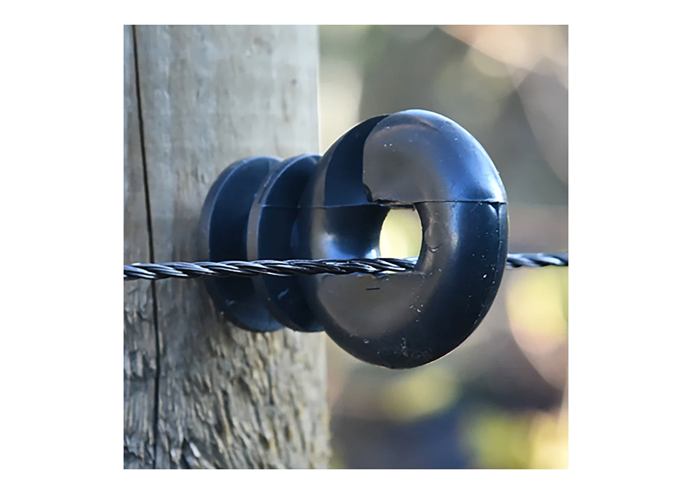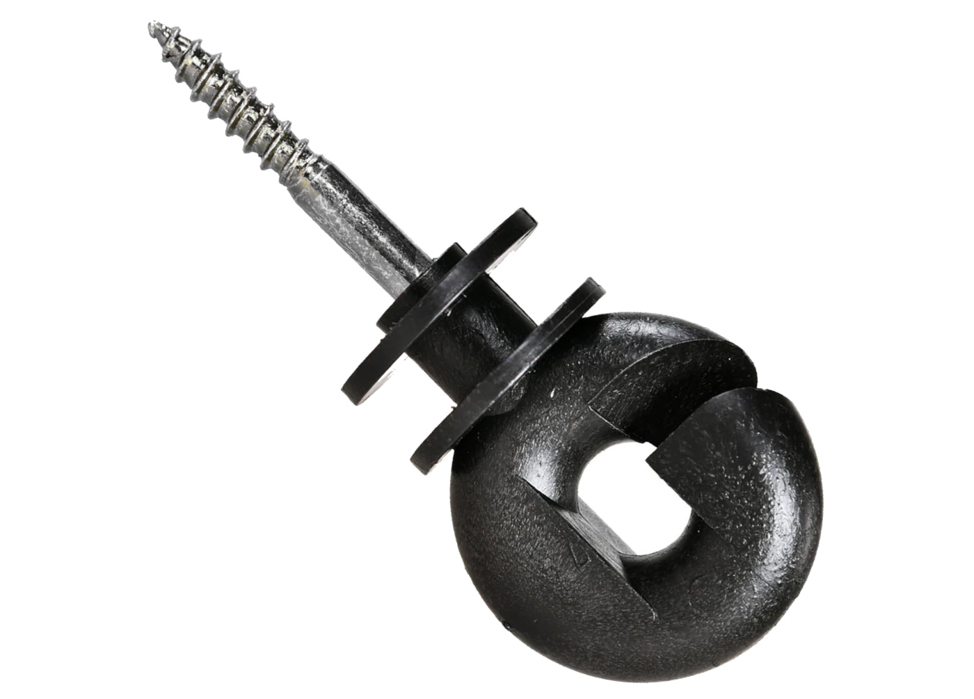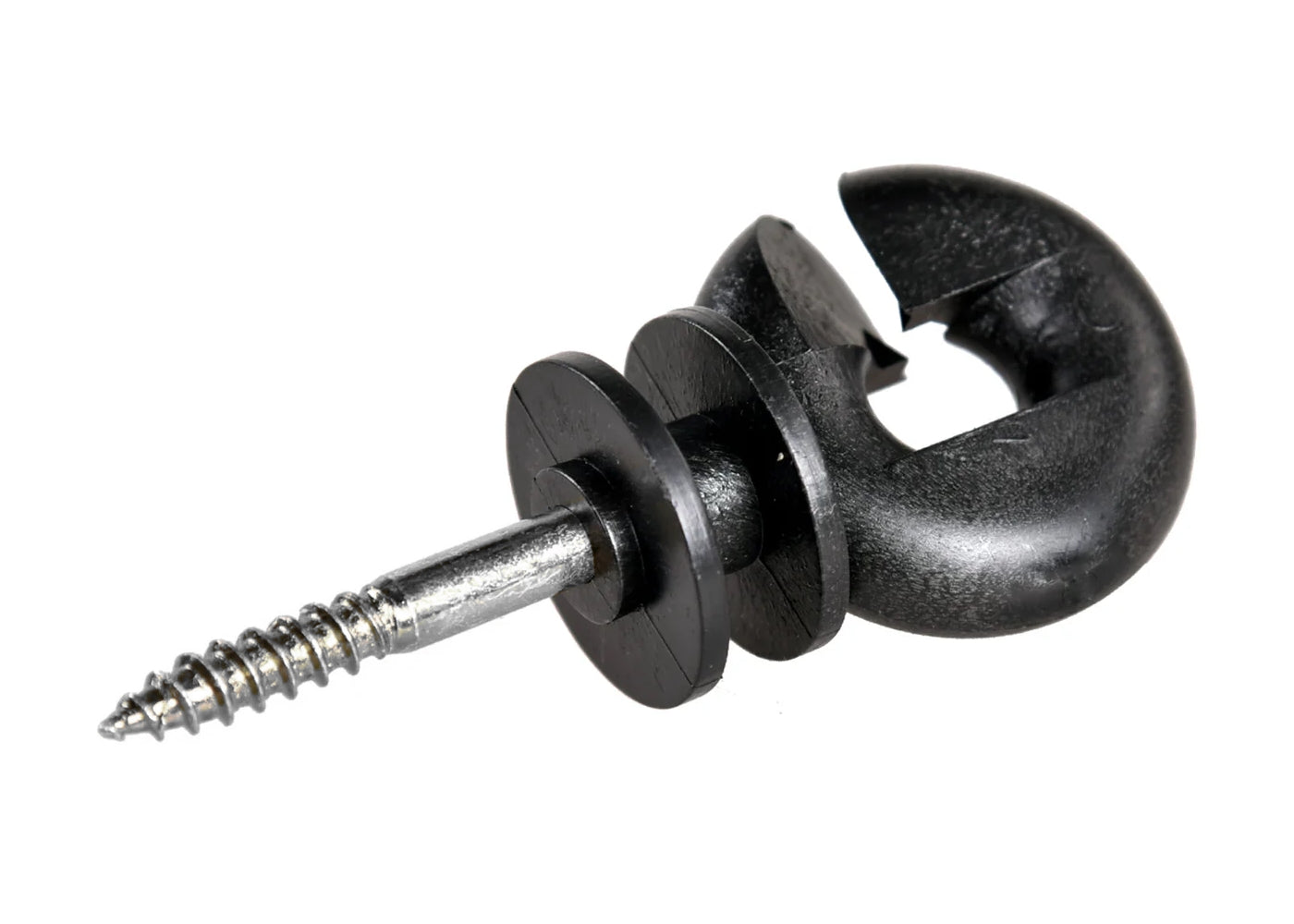 The Hotline Screw-in Ring Insulator is universally suitable for pasture fence tapes up to 13mm and pasture fence wire and rope up to 7mm. With the integrated wooden thread on the 5.3mm thick and stable support, this insulator can be quickly and securely attached to wooden or recycled stakes and is suitable as a line insulator. The conductor material is free running and the proven design prevents it from falling out even when untensioned. Hotline insulators are made of high quality plastics and are UV resistant. *Available in a pack of 20.