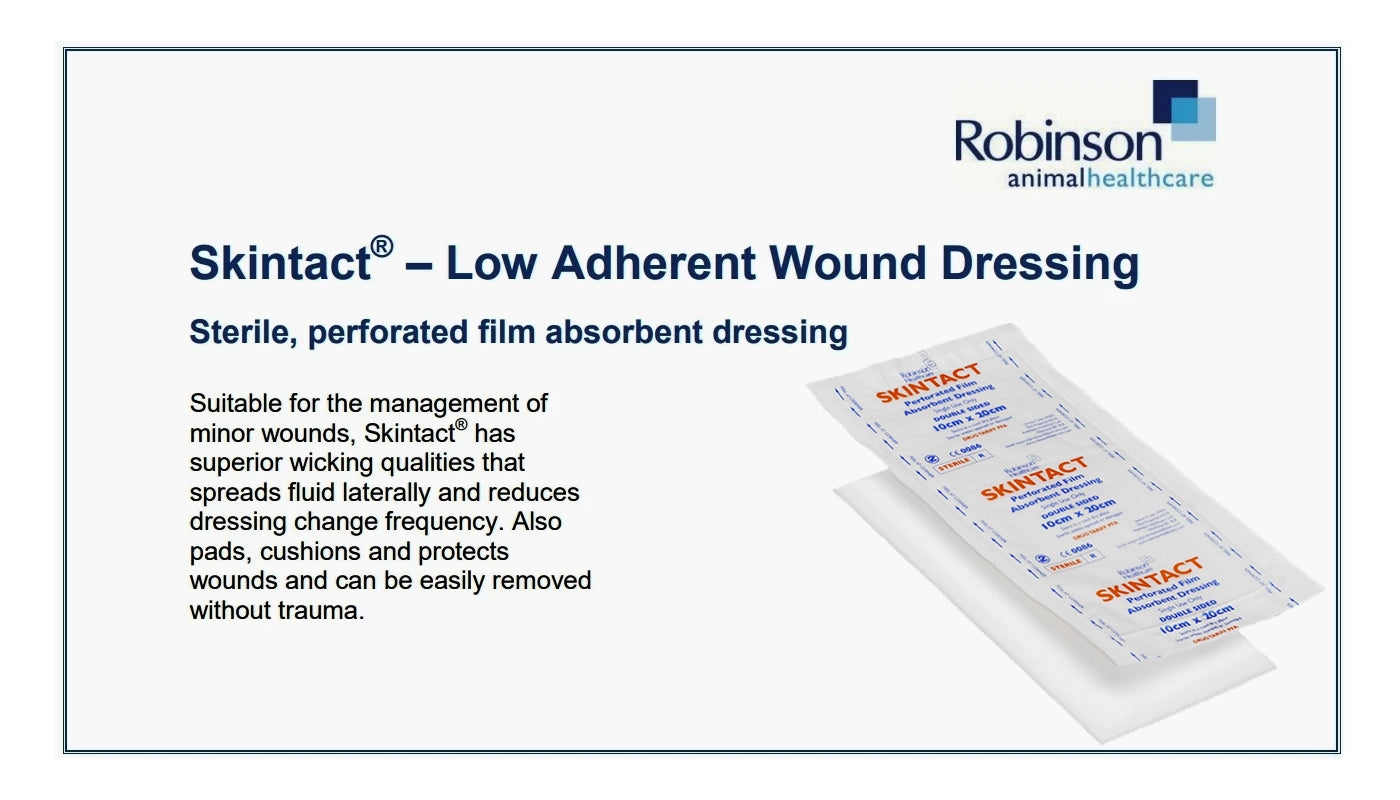 Skintact Perforated Film Absorbent Dressing is the same on both sides, which prevents it being used wrong side down. The dressing consists of two layers of perforated film with an inner absorbent layer. The perforations allow drainage of exudate to the absorbent layer where fluid is wicked laterally, extending the time before strike through occurs. Skintact Low Adherent Dressing is suitable for the management of minor wounds, cuts and grazes and is ideal for use in chiropody thanks to the two low adherent sides, for use between toes. Dressings are supplied in individual sterile packs.